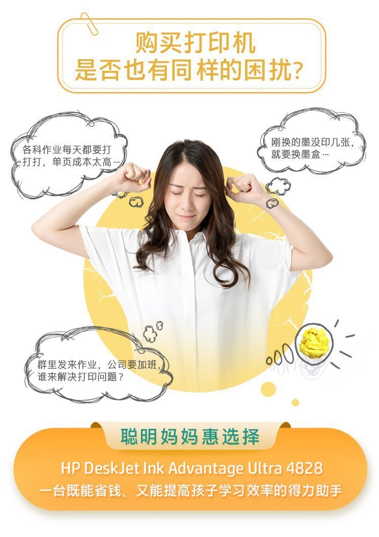 惠普4828扫描手机无线A4彩色喷墨小型办公学生家用打印复印一体机