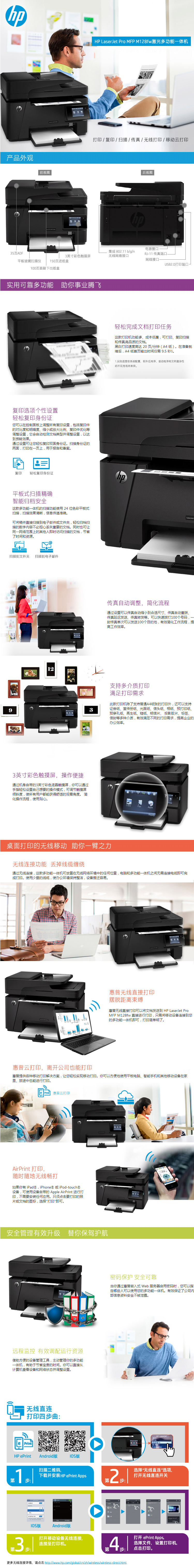 惠普M128fn/128fw扫描无线有线A4办公家用黑白激光打印复印一体机