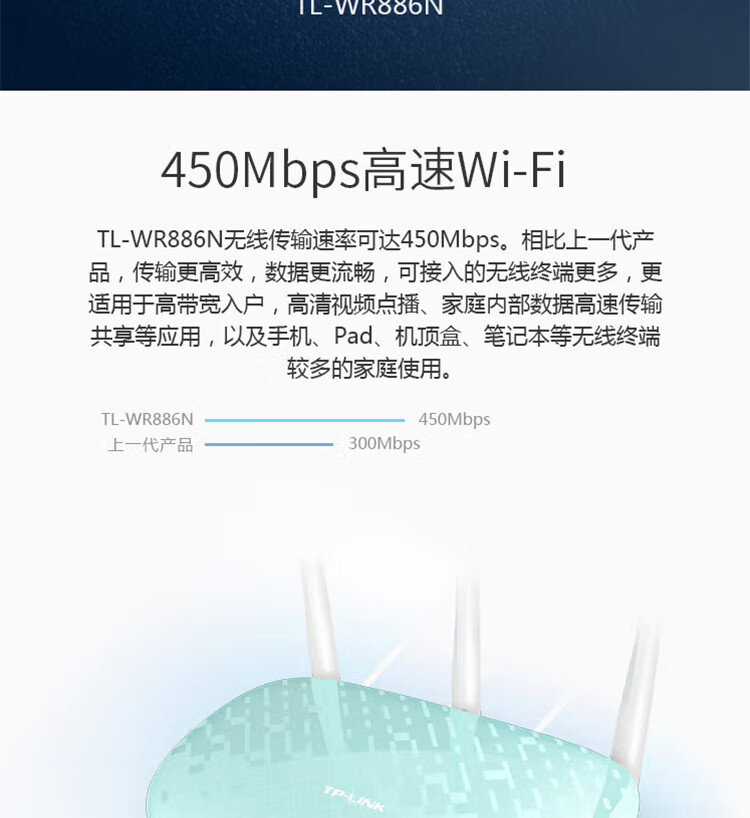 tp-link无线路由器TL-WR886N家用智能wifi穿墙450M tplink批发