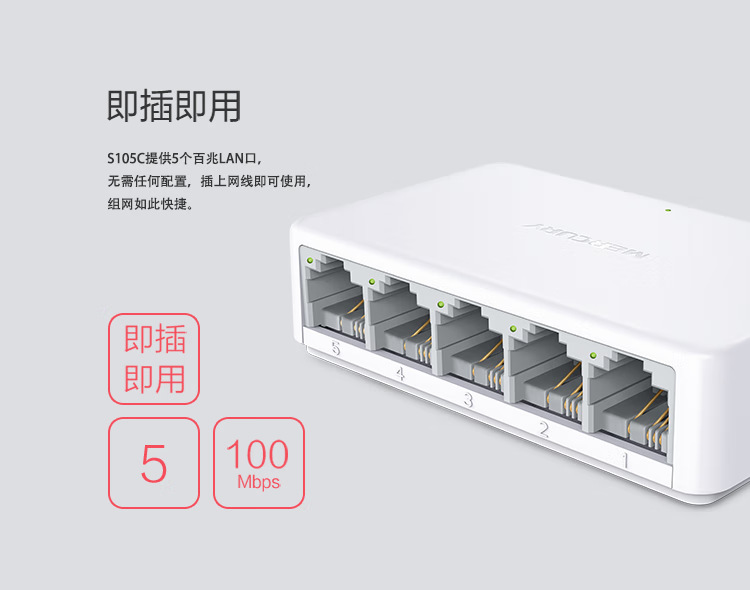 MERCURY水星S105C 5口百兆交换机 4口家用宿舍网线网络分线分流器