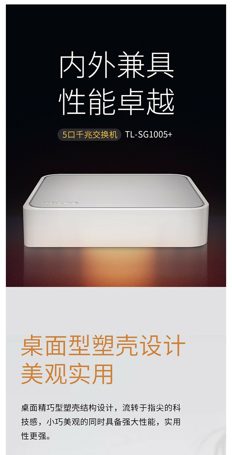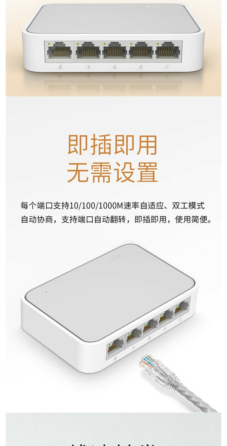 TP-LINK 5口千兆交换机网线网络分线器分流器即插即用 TL-SG1005+