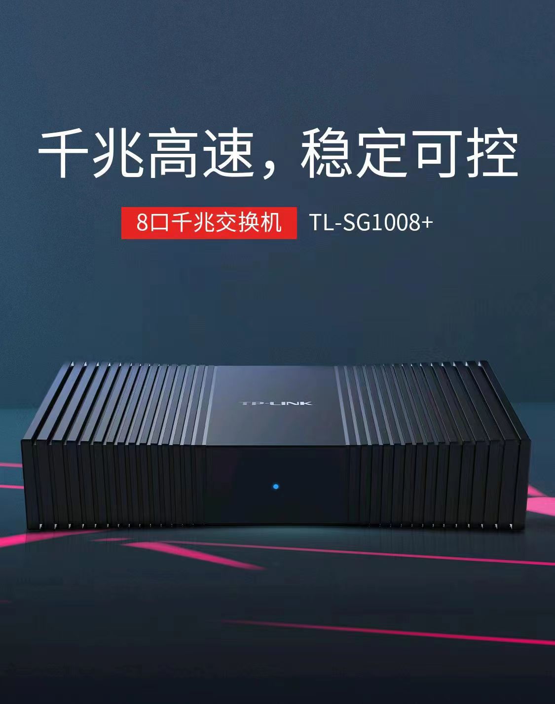 TP-LINK TL-SG1008+ 8口千兆交换机塑壳高速1000M网络监控分线器