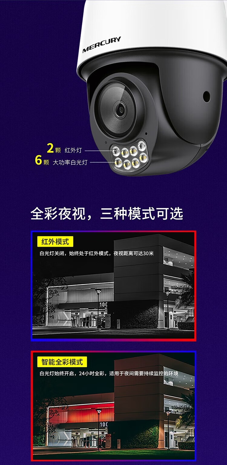 水星300万400万500万室外POE全彩有线摄像头MIPC428PW云台360旋转