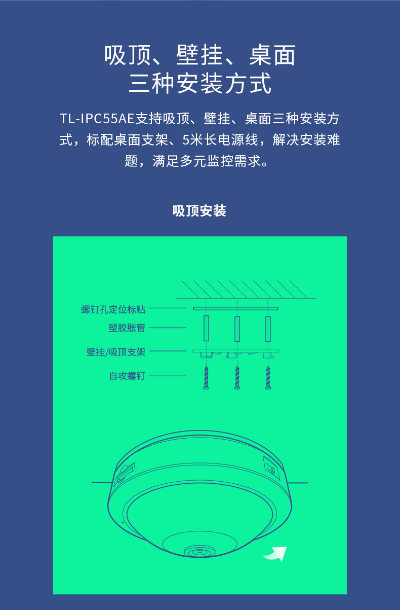 【毛戈平专用】TP-LINK IPC55AE 全景无线对讲摄像机500万监控POE