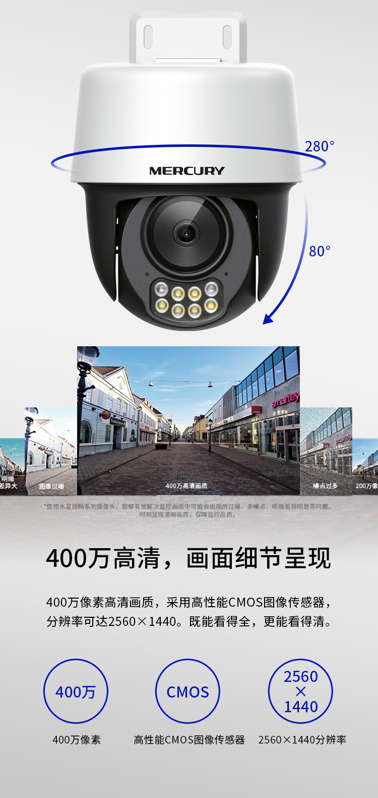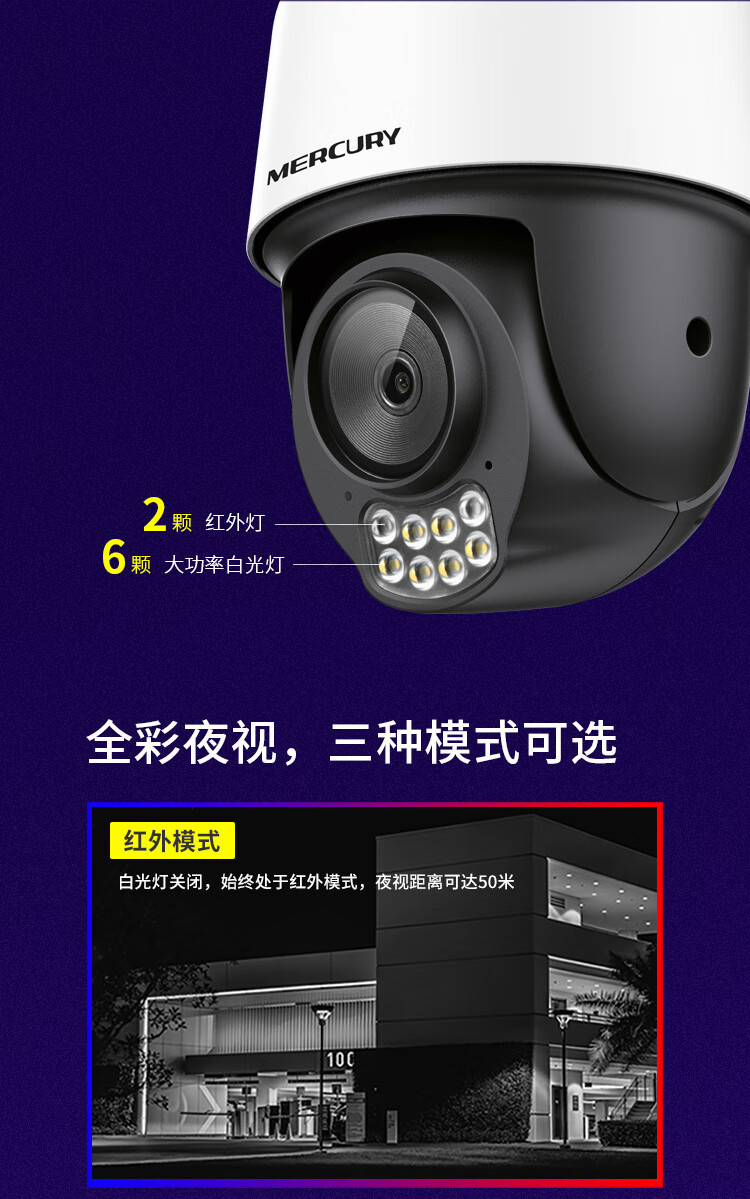 水星500万全彩夜视室外防水监控摄像头家用远程可旋转MIPC5286W-4