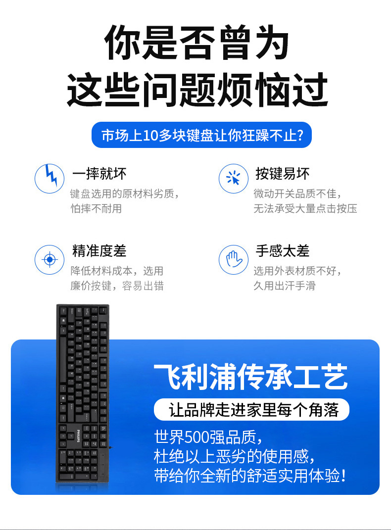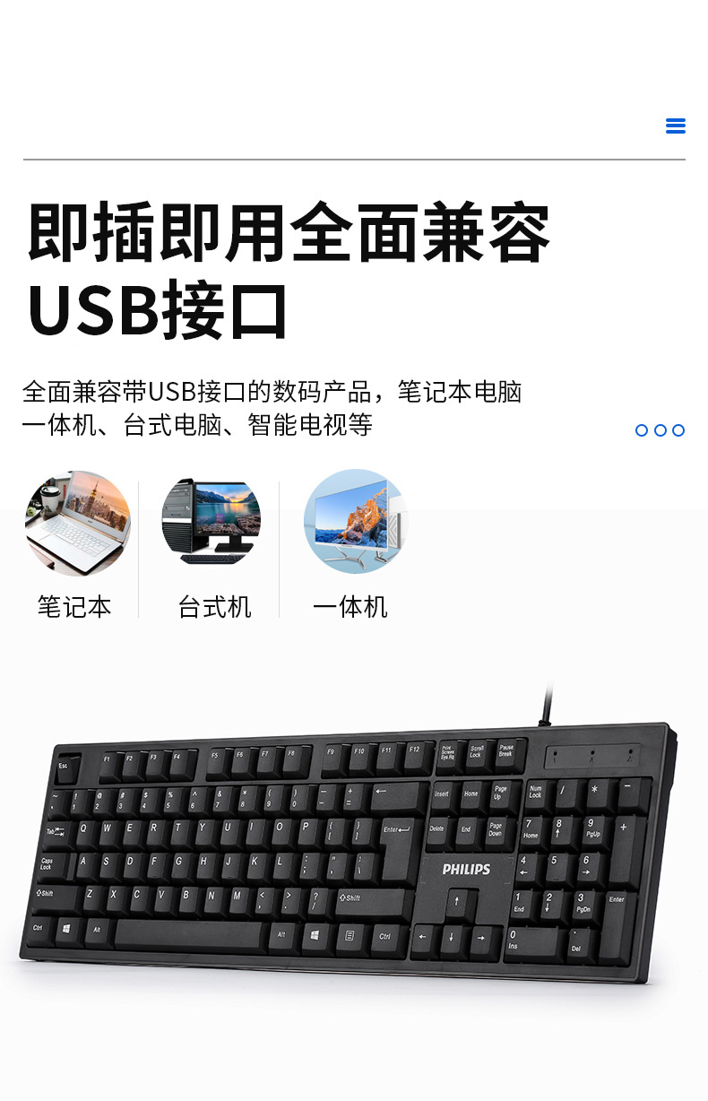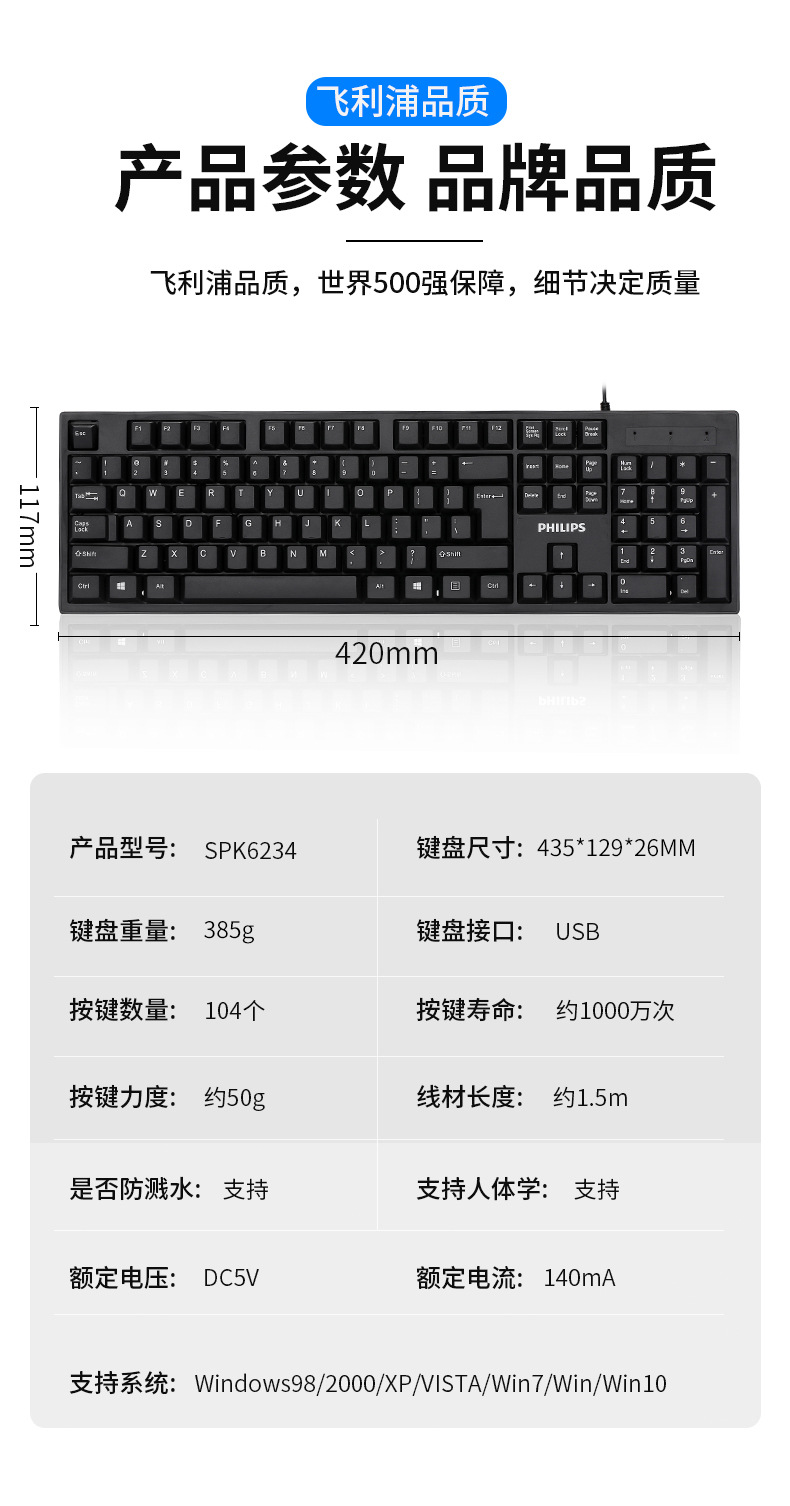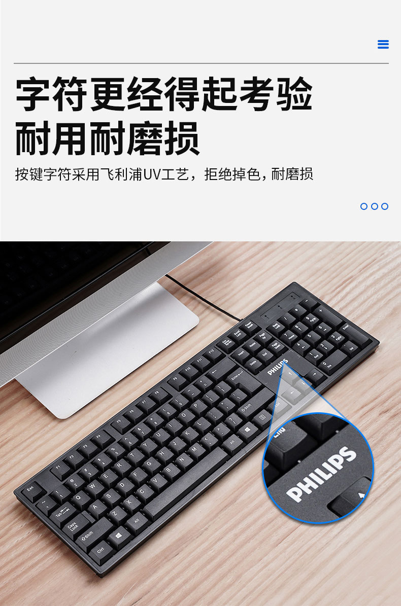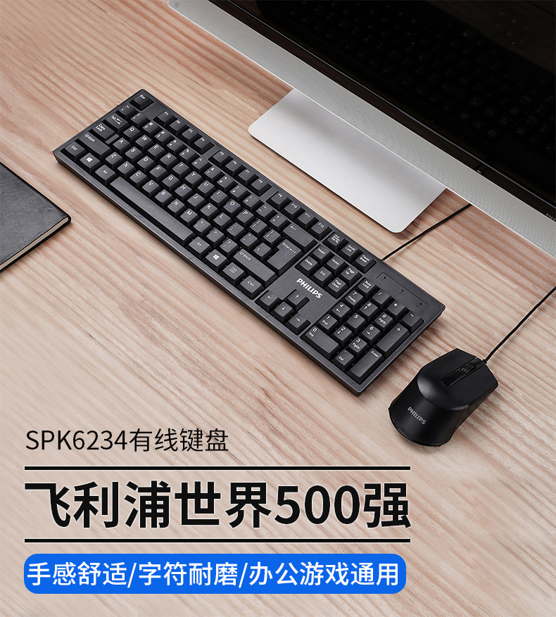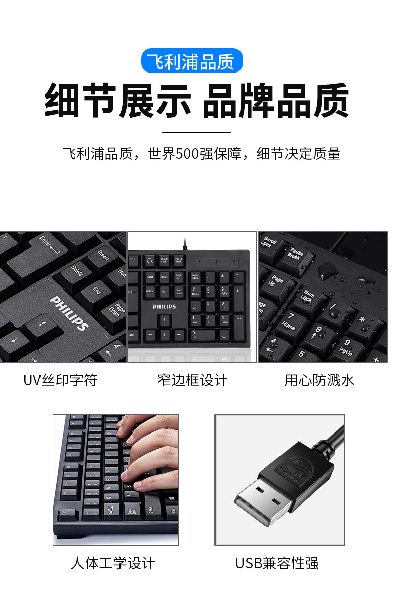 飞利浦SPT6234有线键盘鼠标套装一体机笔记本台机电脑商务usb键盘