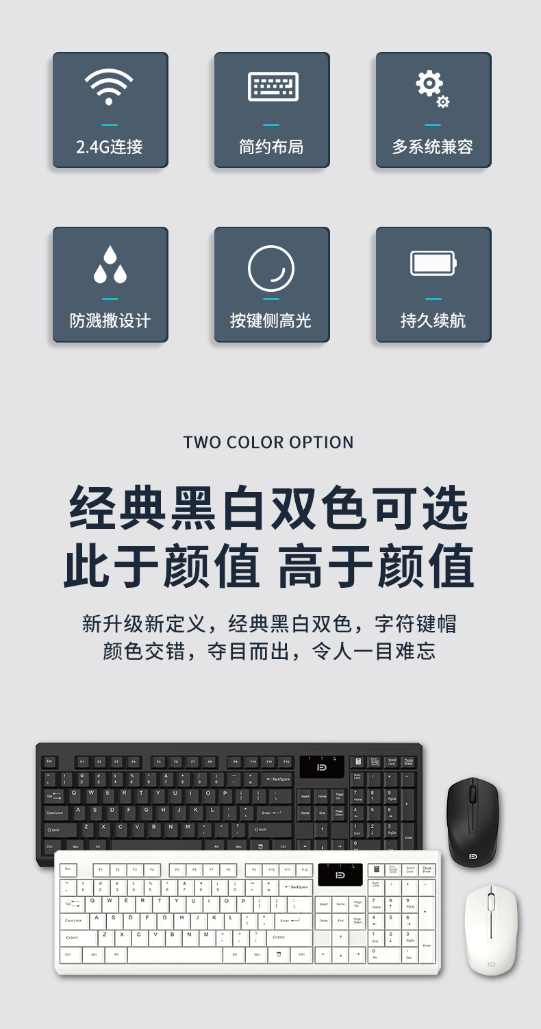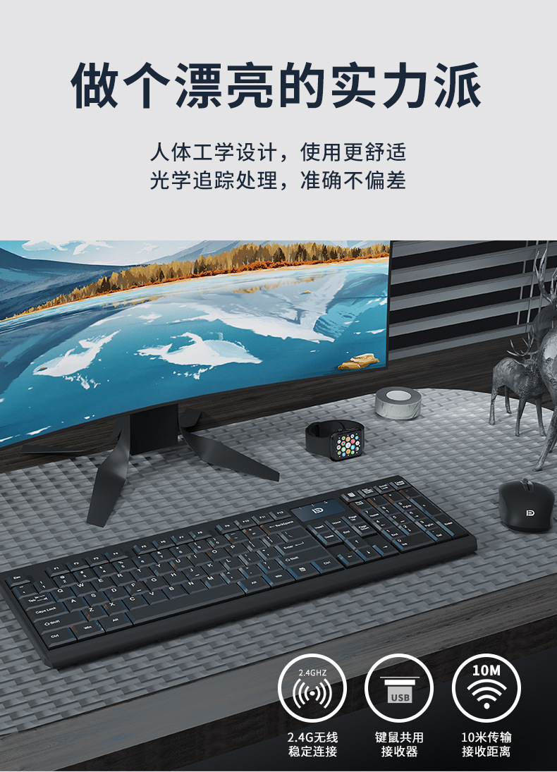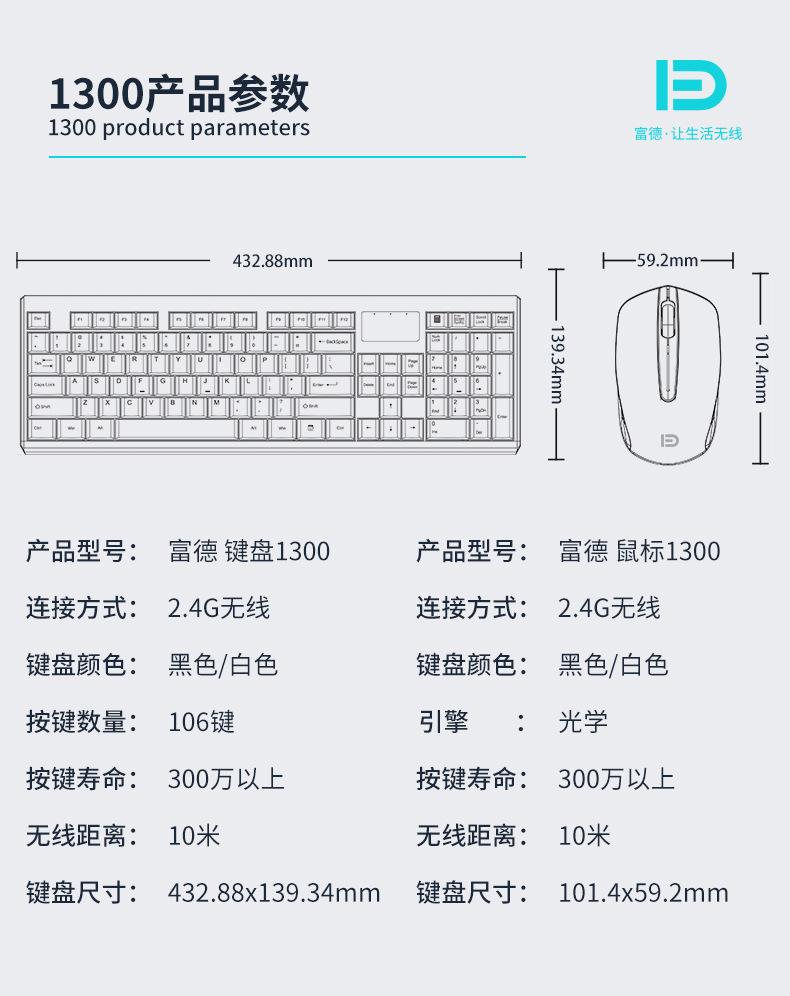 富德1300无线鼠标键盘 批发笔记本电脑办公家用无线套装键盘鼠标