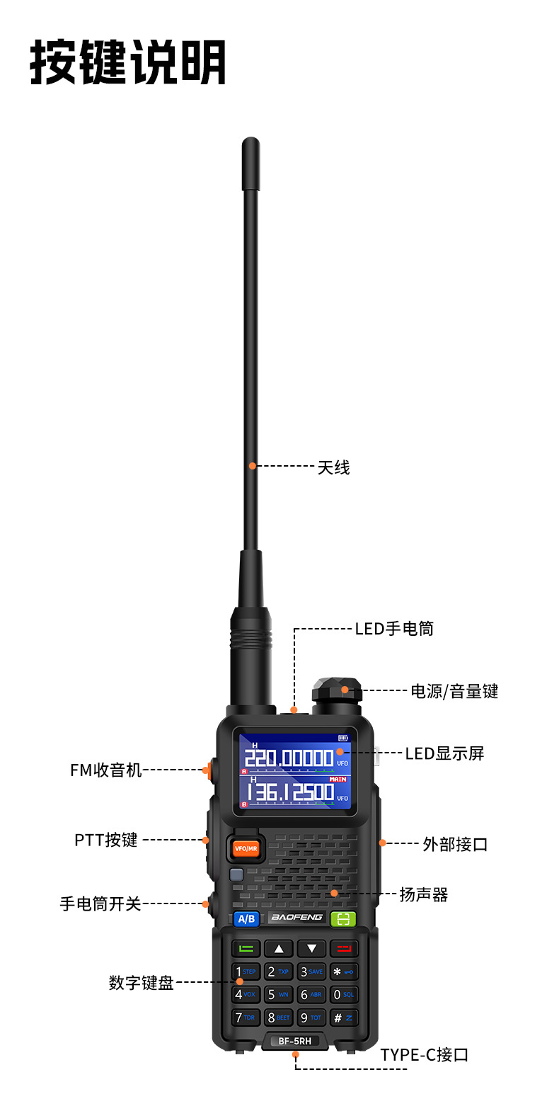 宝锋UV5R调频对讲机大功率户外远距离车队自驾游无线民用手台批发