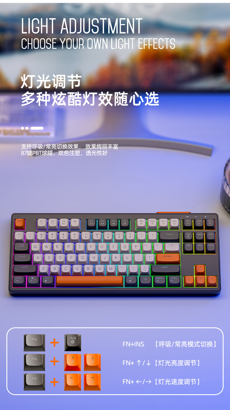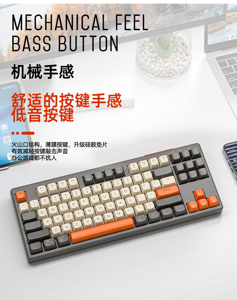 现货 自由狼M87双模蓝牙无线键盘可充电机械手感客制化87键小键盘