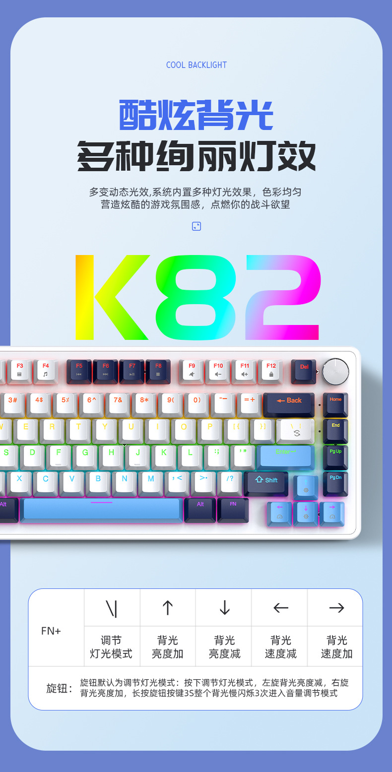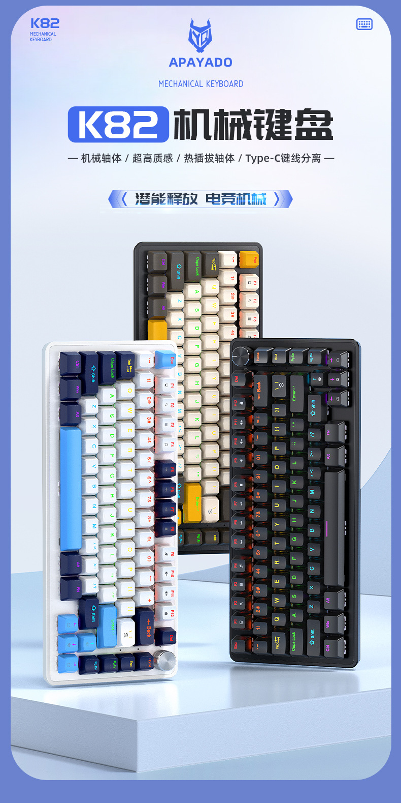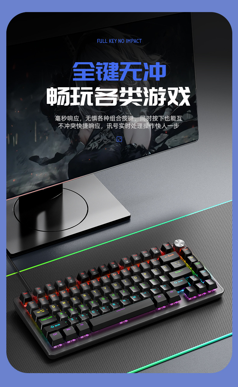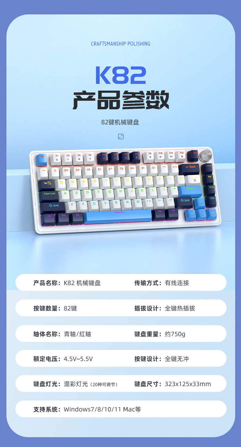 K82有线带旋钮机械键盘青轴红轴键线分离热插拔电竞游戏电脑