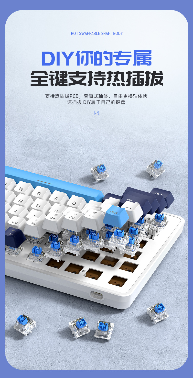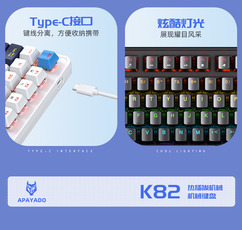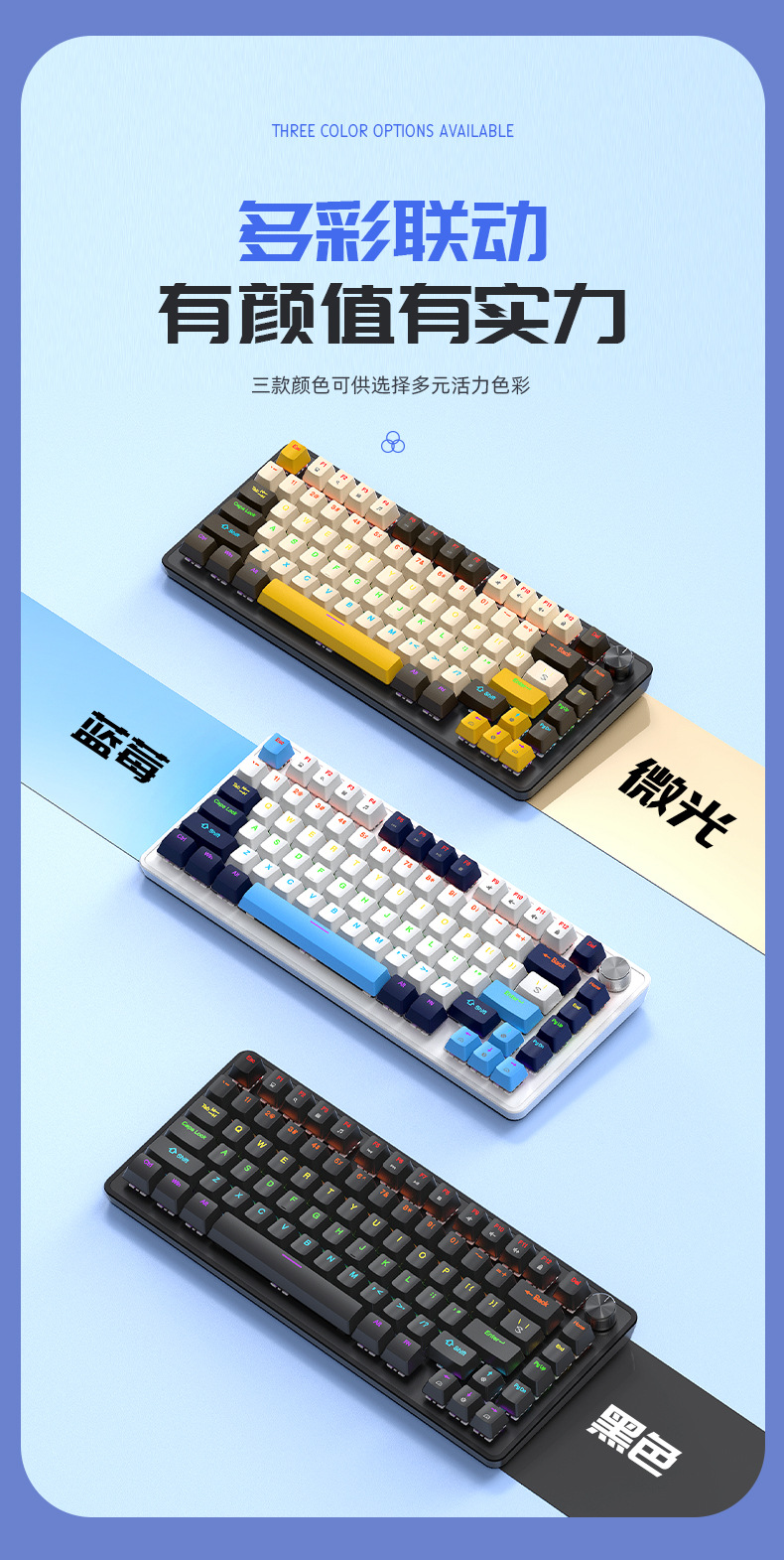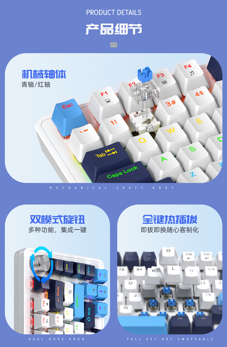 K82有线带旋钮机械键盘青轴红轴键线分离热插拔电竞游戏电脑