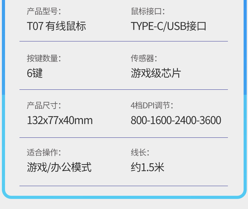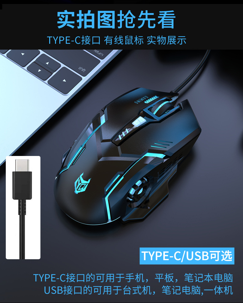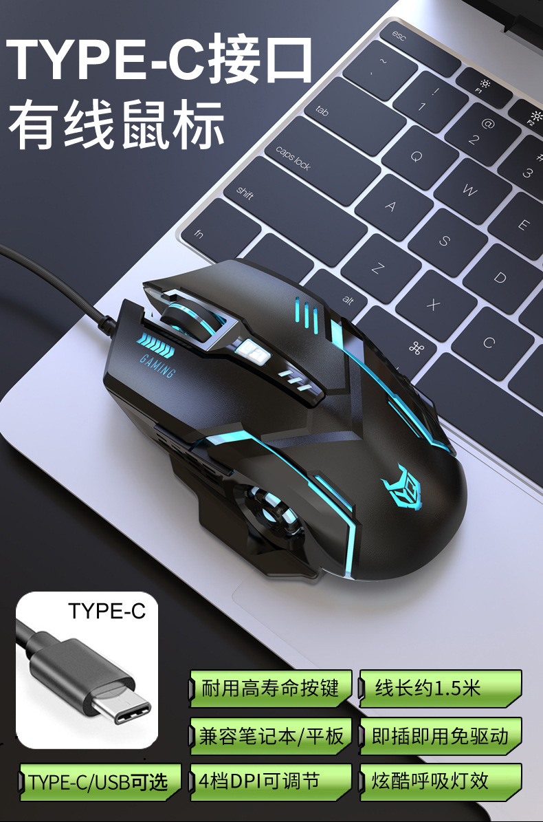 现货 type-c鼠标有线笔记本电脑手机平板办公 typec接口 c口typc