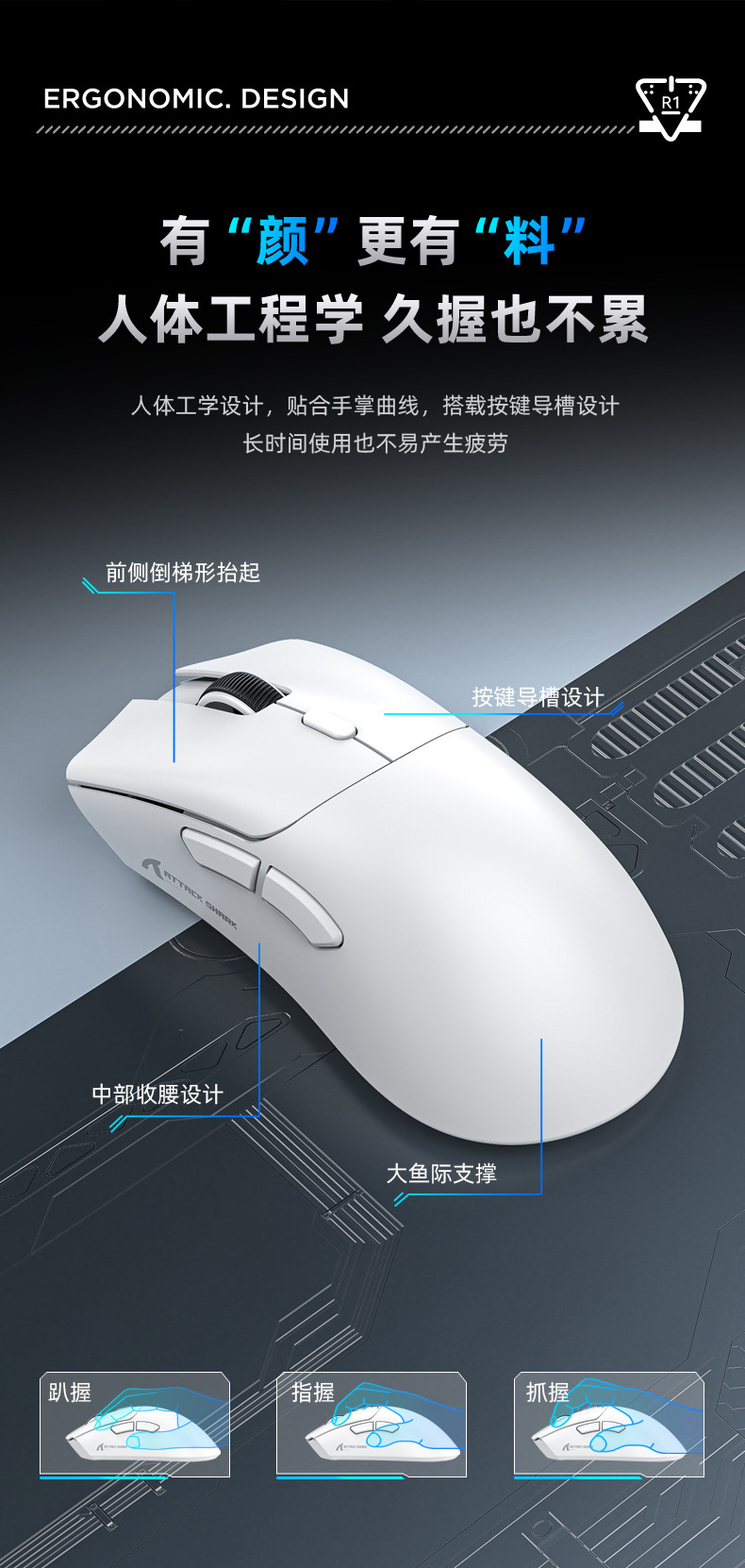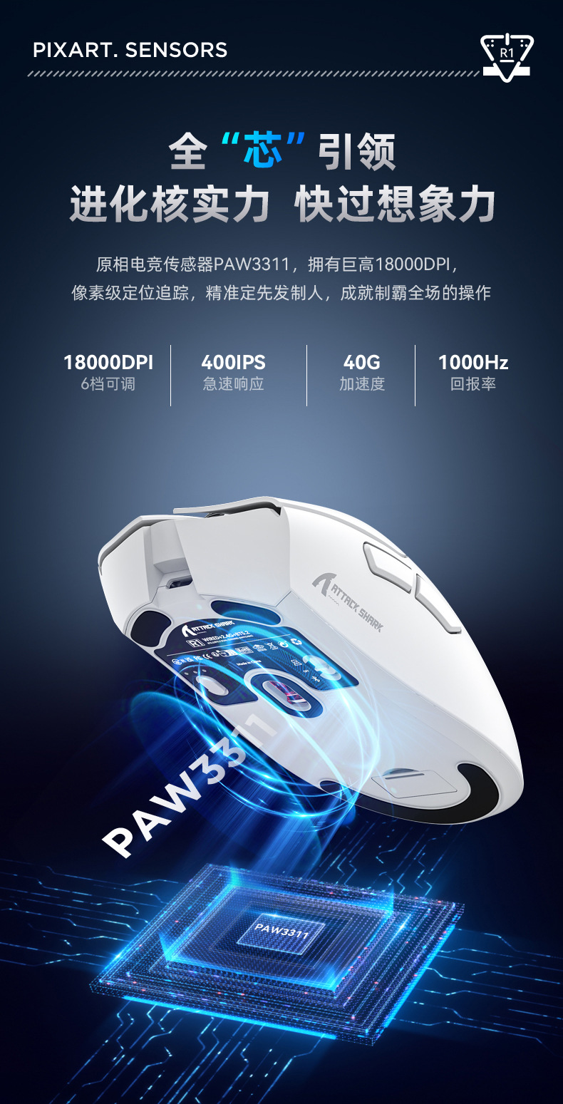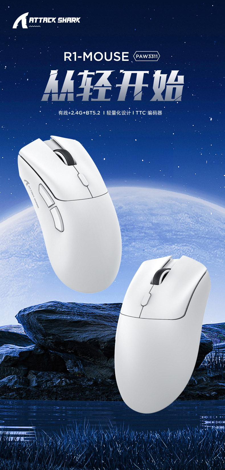 现货Attack Shark/攻击鲨R1轻量化3311电竞游戏三模蓝牙无线鼠标