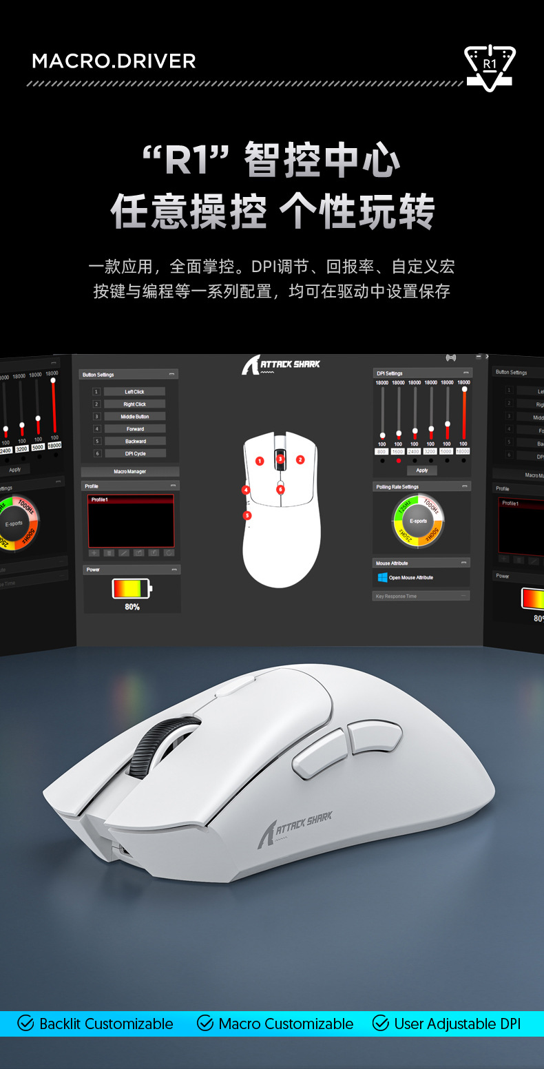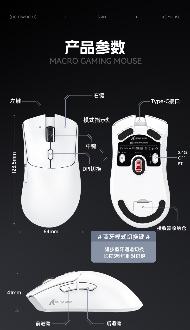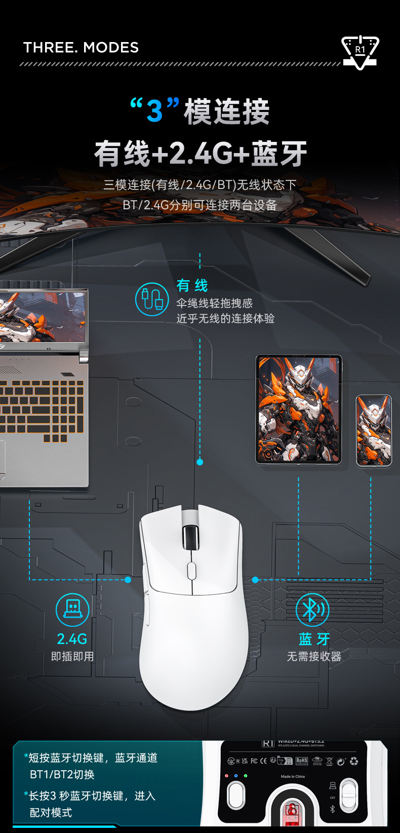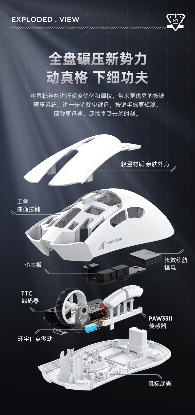 现货Attack Shark/攻击鲨R1轻量化3311电竞游戏三模蓝牙无线鼠标