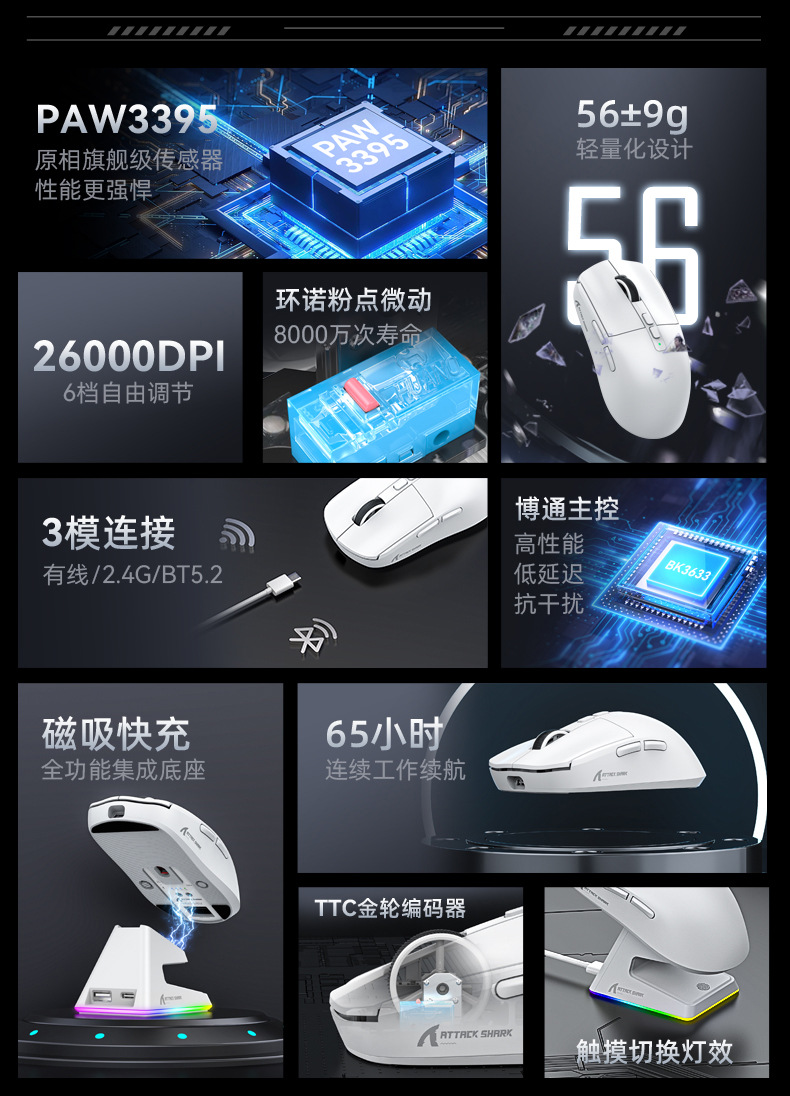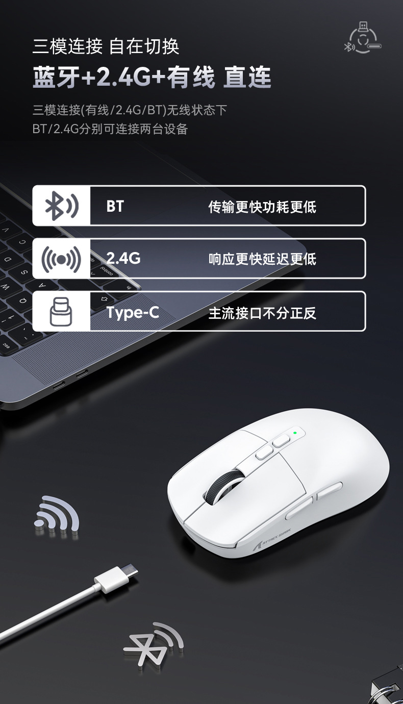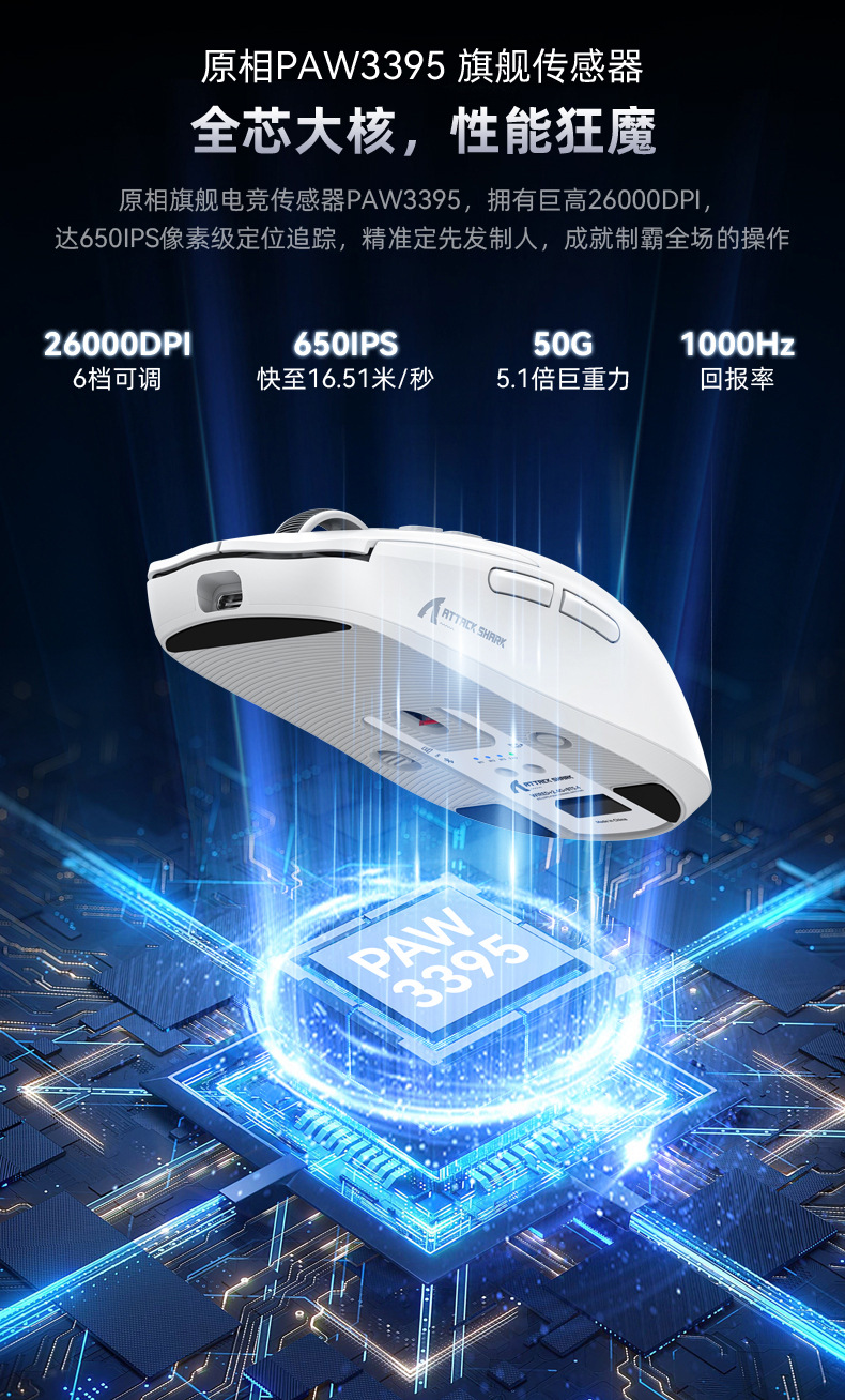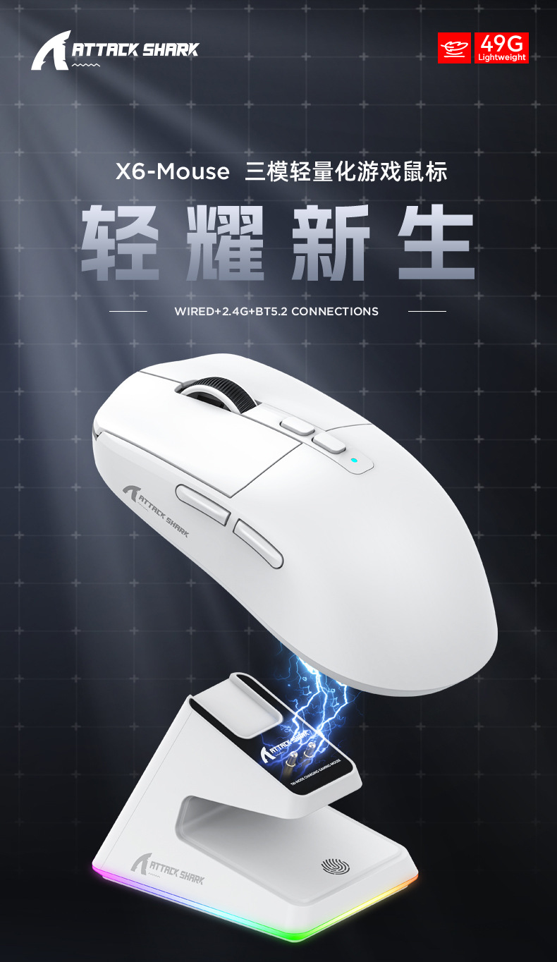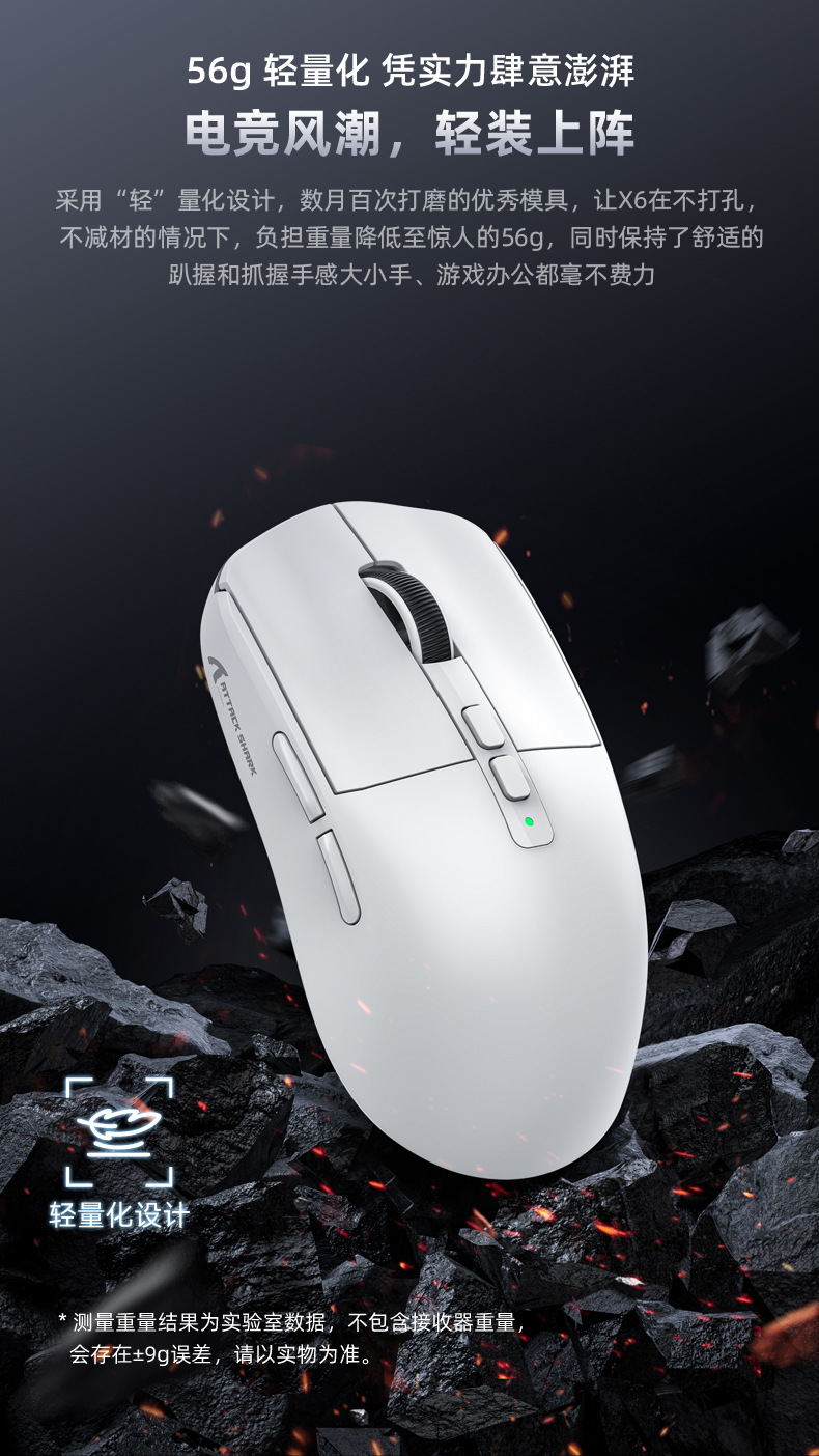 现货 Attack Shark攻击鲨X6三模无线蓝牙鼠标轻量化PAW3395