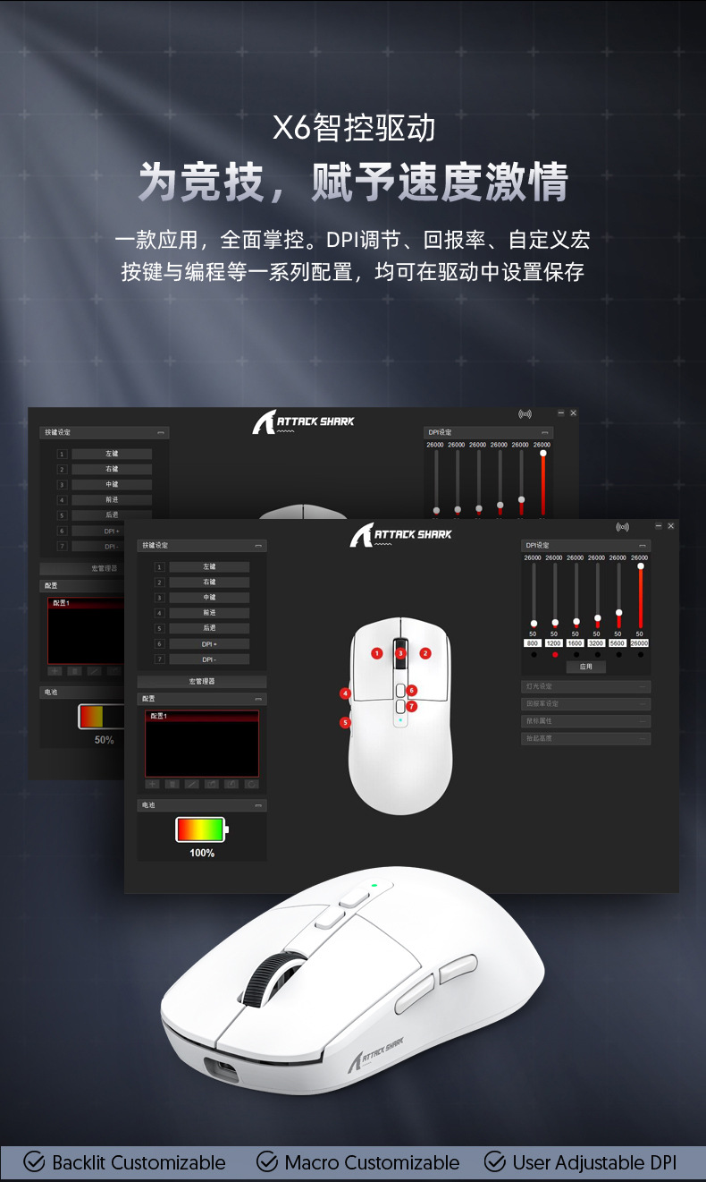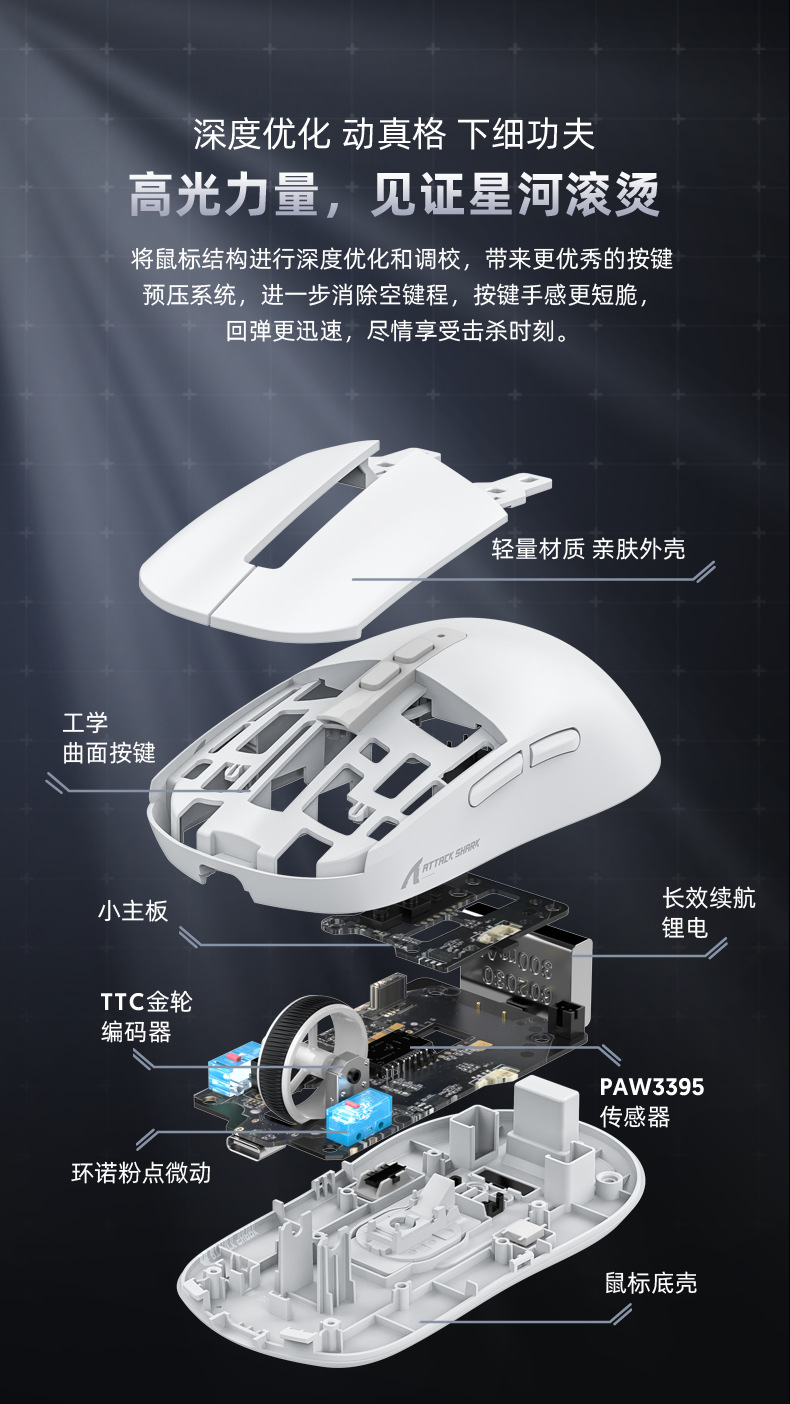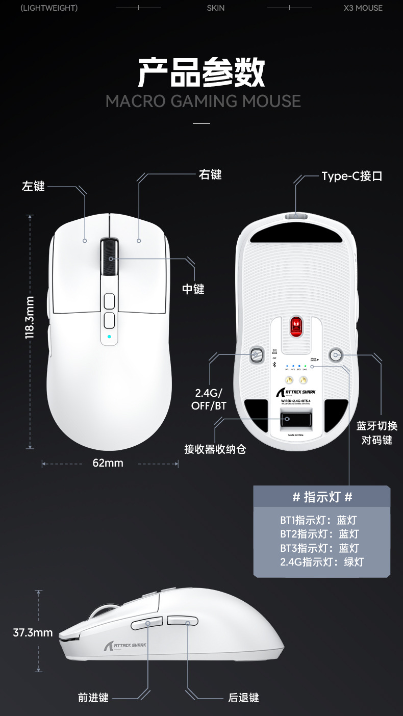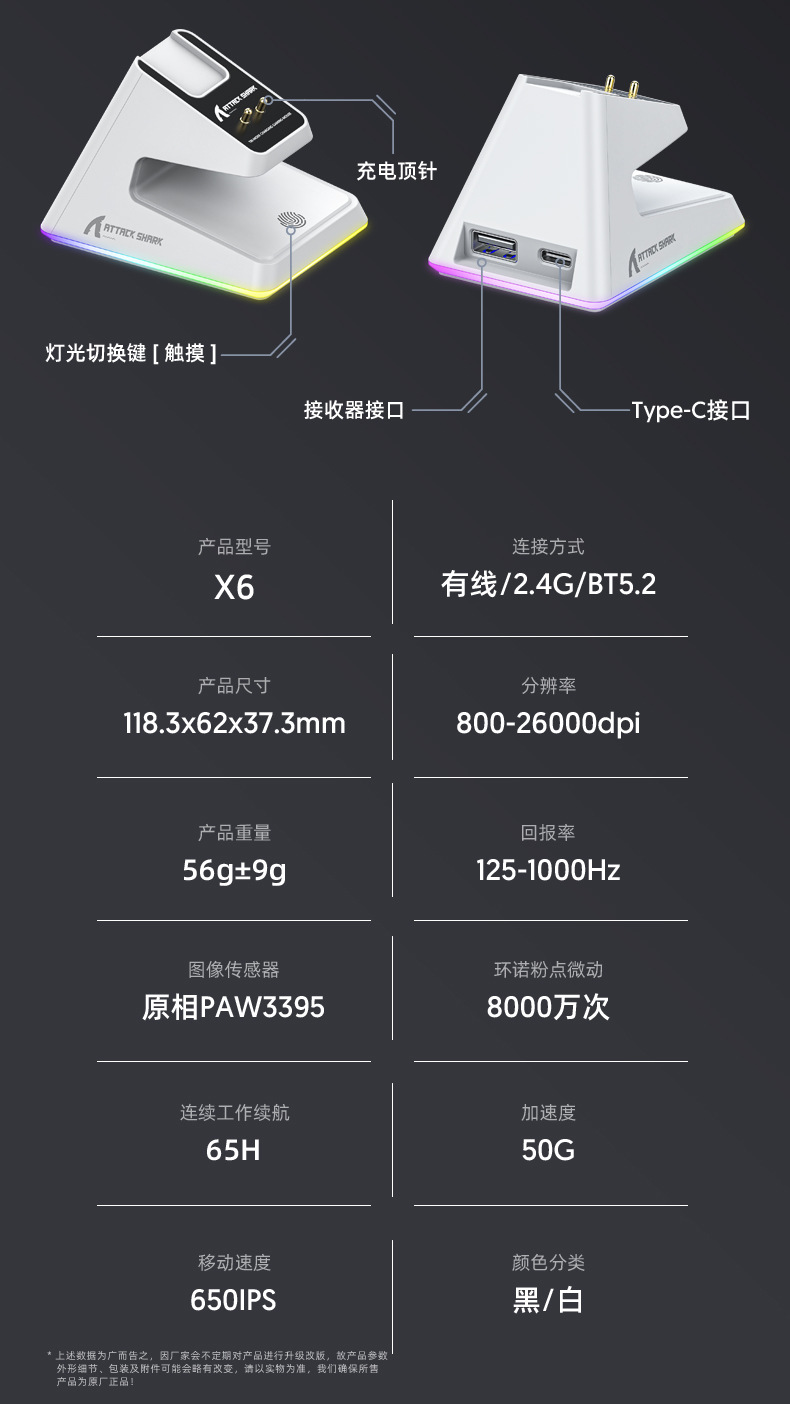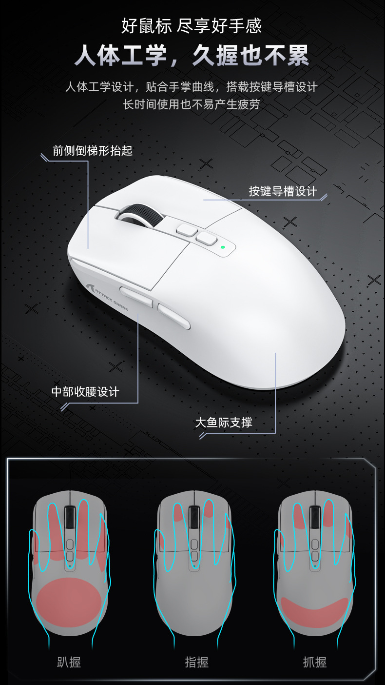 现货 Attack Shark攻击鲨X6三模无线蓝牙鼠标轻量化PAW3395