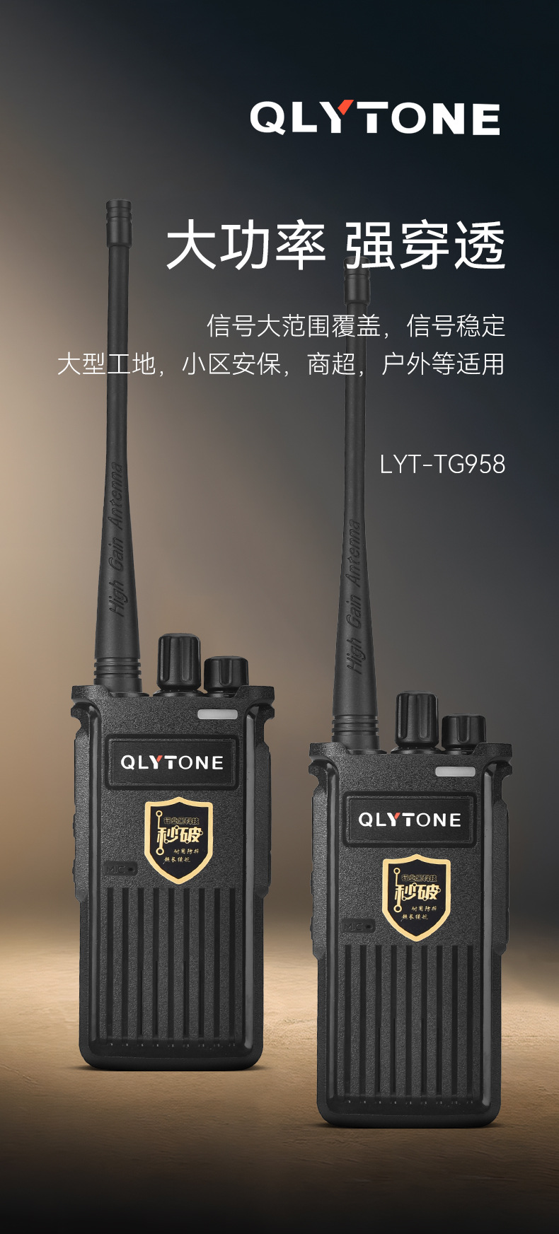 陆益通对讲机大功率户外工地酒店一键调频穿透力强10公里无线手台