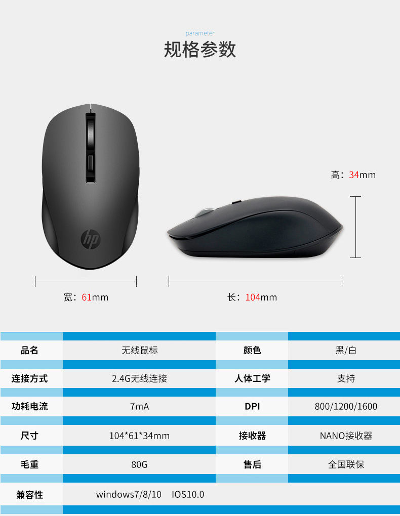 HP惠普S1000PLUS无线鼠标办公台式机笔记本通用静音鼠标