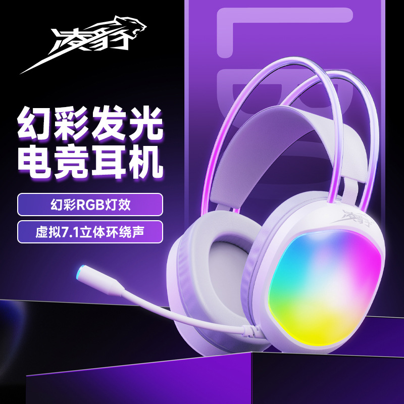 凌豹LB01USB炫彩RGB发光耳7.1电竞游戏耳机台式机笔记本办公通用