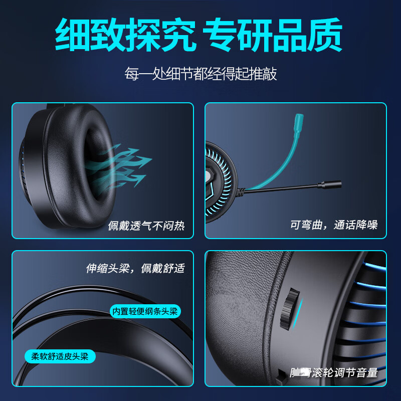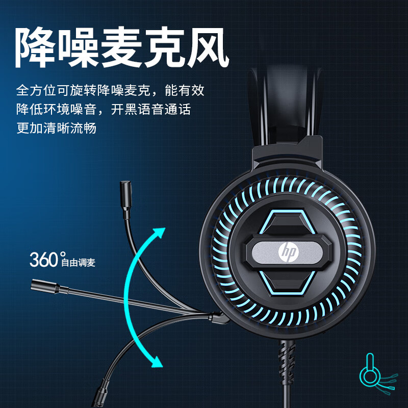 HP惠普8001U电脑7.1头戴式大耳麦低音usb蓝光耳机 商务游戏电竞